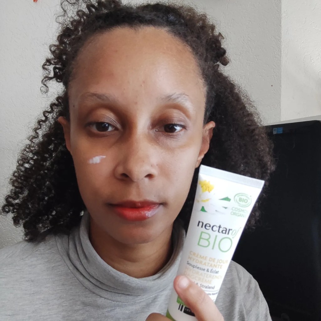 Cette crème a une consistance légère qui pénètre très rapidement dans la peau. Elle ne laisse pas de sensation collante sur la peau ni d’impression d’avoir quelque chose sur la peau. Elle a un parfum très léger qui est agréable.