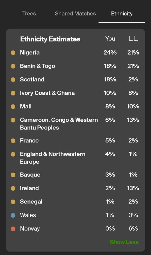 This month has actually been pretty active for DNA cousins, I had one of my cousins pop up, they are actually my half 1st cousin but in my family we don’t really use “half”. I also had the child of one of my cousins pop up, again they are half relation but we don’t use those terms.