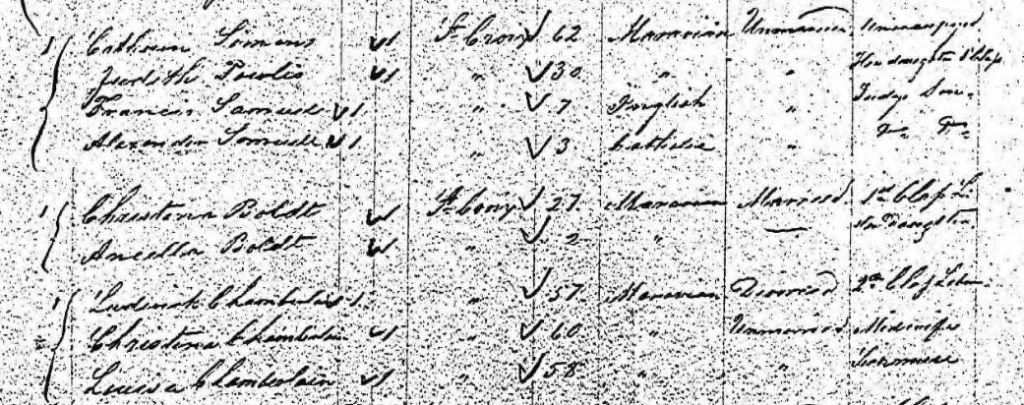 That is the question that I am currently asking myself, have I in fact discovered the mother and sibling of Christina Chamberlain right there in a Census document that I have looked at several times before?