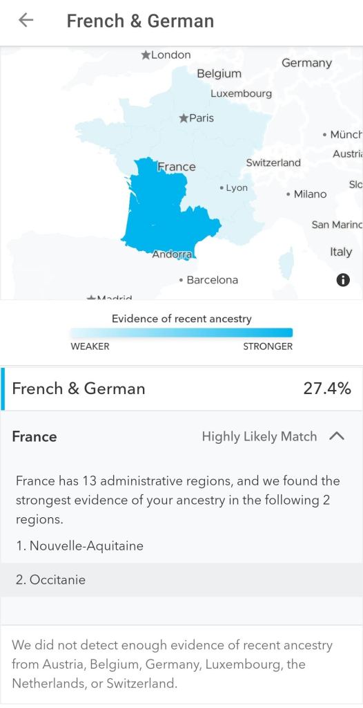Yes, I have Nouvelle-Aquitaine and Occiataine regions for France just like my father, imagine when I first took my test I only had 3.3% French.