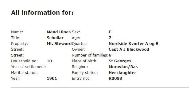 His F&G and B&I quite literally switched positions and for someone who just got a DNA test, it would seem like his father wasn’t actually his father! It is nice to see most of the Broadly gone and I hope in future updates they can attempt to break down the African regions because there are so many different ethnic groups in Ghana alone. Just by statistics alone, you’d assume that Ghanaian ancestry would be Akan but there’s just no way to tell. Try searching for records you say? That is nearly impossible when you have no idea who the father of your great-grandmother was or not being able to go past a certain point. For instance, my Father’s mother was born in the US Virgin Islands, her mother in St. Croix and her father St. Thomas, her father’s line is a giant mystery. I have been able to track back to my Great Great Grandparents Joseph Alexander Boyles born about 1869 but I have a dead-end there, I don’t know where he was born or who his parents were and I don’t know why the last name went from Boyles to Boynes. Sarah Holm is also a complete blank, she was born about 1880 but I don’t know where or who her parents are. I keep looking in my DNA relatives but those names don’t appear to be shared with anyone else. Makes you wonder. For my other Great Great Grandparents, one side is more researched than the other, George Petersen born in St. Croix (assumed) around ?, I currently have a George Petersen born on August 29, 1881, to Thomas Petersen and mother is unknown. Thomas was born in St. Croix around 1856. Here the line stops, Petersen is a very common surname on the Island and everyone assumes that they are all connected but there’s no proof to this, I don’t even have any DNA relatives with the last name. The more researched side belongs to Maud Hines born in St. Croix on July 28, 1899, to Ann “Annie” Eliza Dorothea Boldt (See the baptism record below)