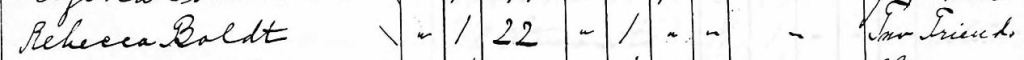 I have not found a baptism record for him. I did find him in the 1870 Census living in a house owned by Sarah Jane Boldt. I’m still doing research into who this might be.