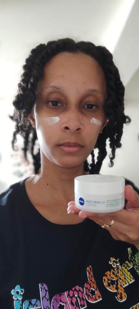 La crème est plus légère et s’applique très bien, elle pénètre rapidement dans la peau et laisse une sensation de fraîcheur sur mon visage, sans sensation de lourdeur.